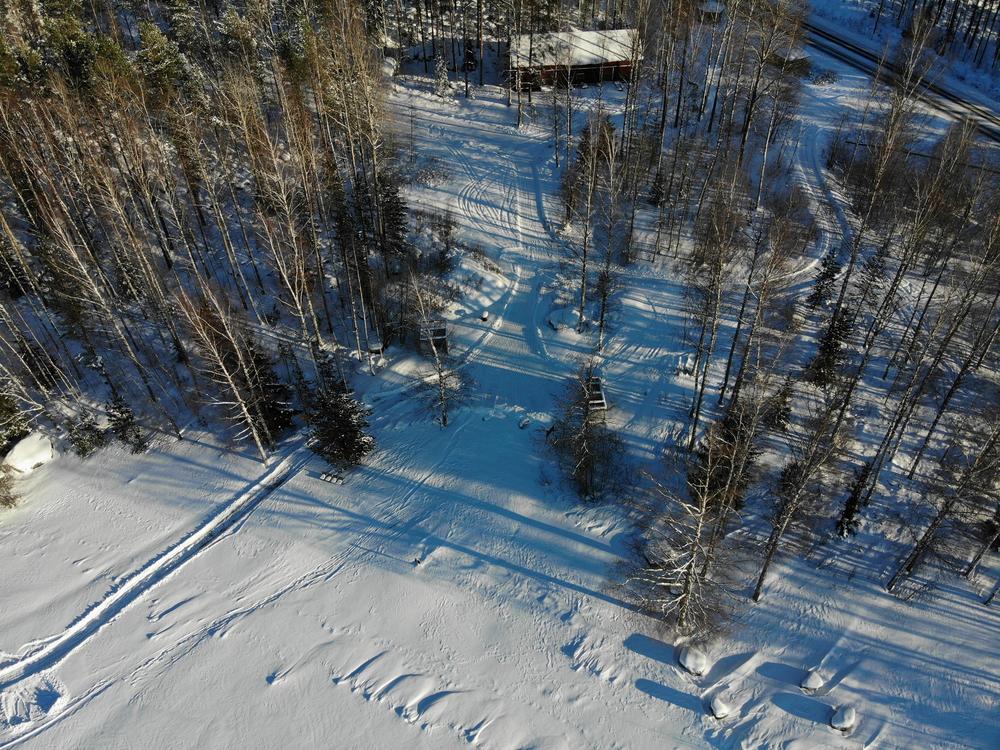 Parkkeeraus Uimarannan parkkipaikalle (kuva alla), josta pääsee suoraan siirtymään jäälle auratulle reitille.